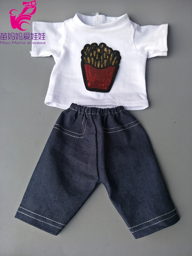 0 Response to " Baby dolls cartoon shirt and jeans pants also fit for 18 inch doll outfit sets doll play house toys"