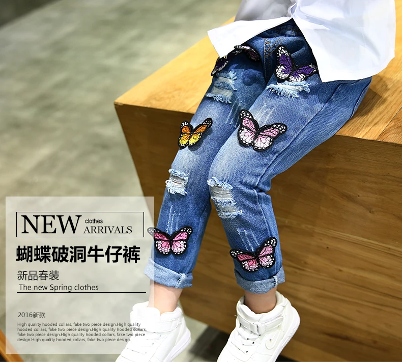 0 Response to " Children's wear jeans 2018 spring new butterflies holes baby jeans trousers 1-5 years old children'"