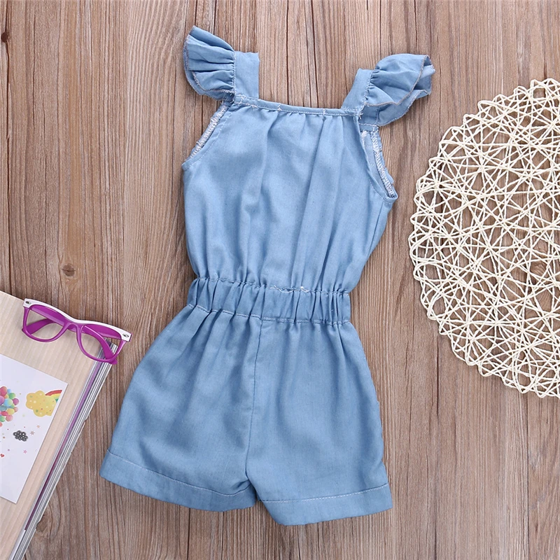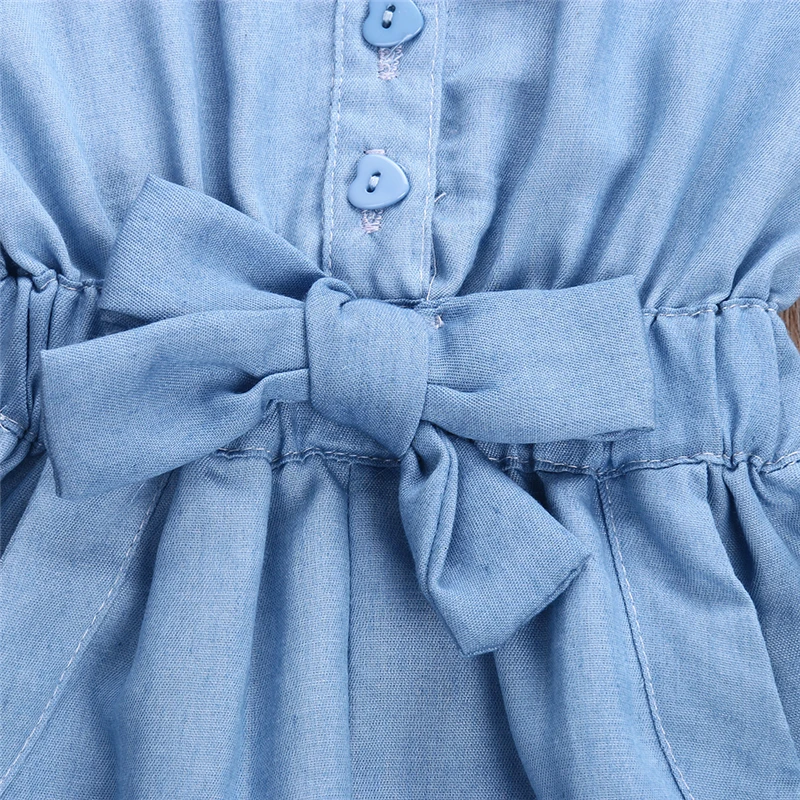 Best Price of Hot Toddler Kids Baby Girl Cotton Washed Jeans Romper Denim Casual Bow jumpsuit Baby Girl Clothes 2